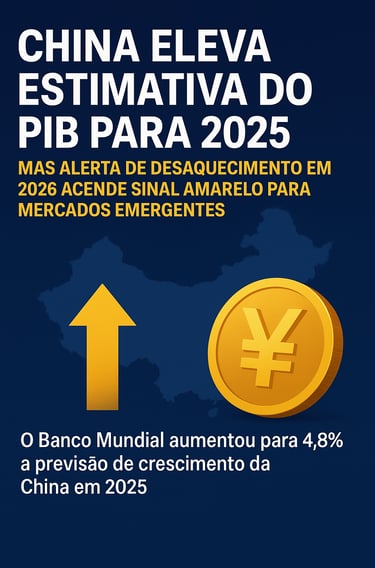 O Banco Mundial aumentou a previsão de crescimento da China para 4,8 % em 2025, mas projeta desaceleração em 2026. Entenda impactos para mercados emergentes como o Brasil.