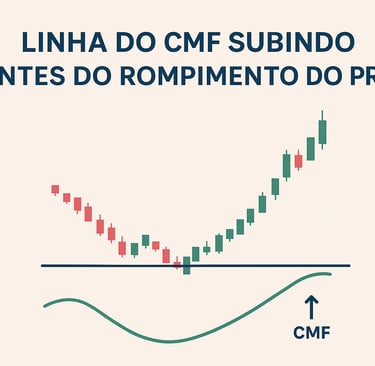 📈 Gráfico ilustrativo: linha do CMF subindo antes do rompimento do preço.