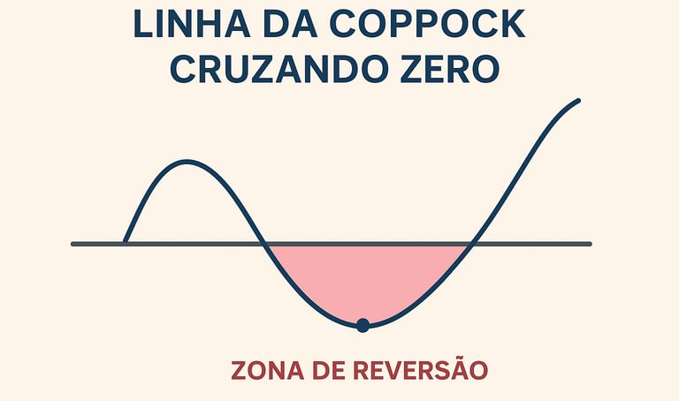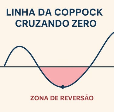 📈 Gráfico ilustrativo: linha da Coppock cruzando zero, com a zona de reversão destacada.